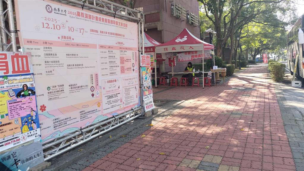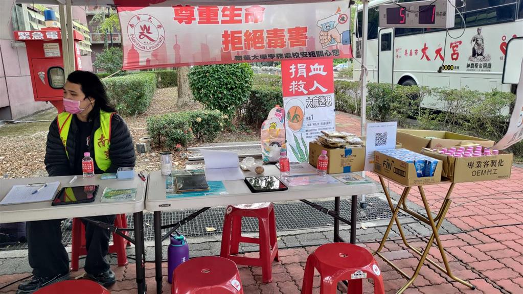 南華大學於12/2~3日辦理「三好校園反毒捐血」暨「視.反毒拒毒宣導」活動,全校師生用行動力捐出沸騰的鮮血,一份關心積極長氣,連接生命連接你我,連接未來的希望,讓生命延續。活動中奉上一杯健康好茶,寒冬天喝杯溫熱養身茶是冬季最棒的享受.喝茶暖心暖胃,響應校園反毒捐熱血,行三好(做好事、說好話、存好心)讓社會更溫暖。